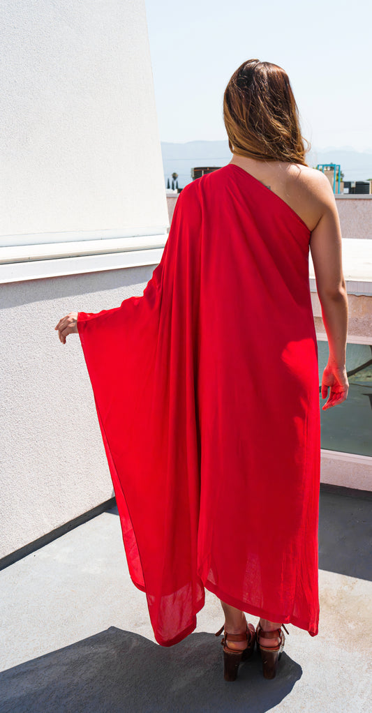 Crimson One Shoulder Dress